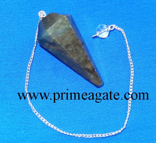 Labradorite Facetted Pendulum: This pendulum features a stunning Labradorite gemstone and is designed with a facetted surface that catches the light beautifully. Labradorite is believed to enhance intuition and inner peace, making this pendulum a great tool for spiritual healing and divination.